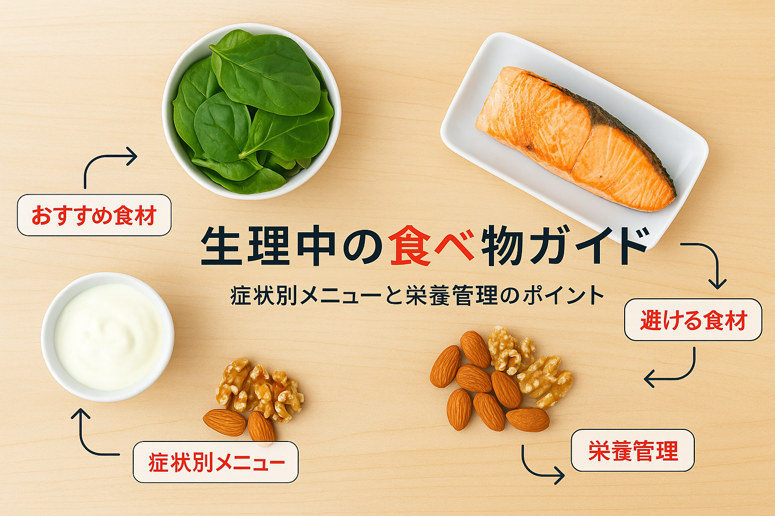 生理中はホルモンバランスや体調の変化によって、食事の選び方が重要になります。特に鉄分やマグネシウム、ビタミン類、イソフラボンなどの栄養素を意識的に摂取することで、不快な症状の緩和や体調維持が期待できます。反対に、カフェインや高脂肪食品、冷たい飲み物、加工食品などは避けたい食材です。ここでは、具体的な食品や食事の工夫を詳しく解説します。
