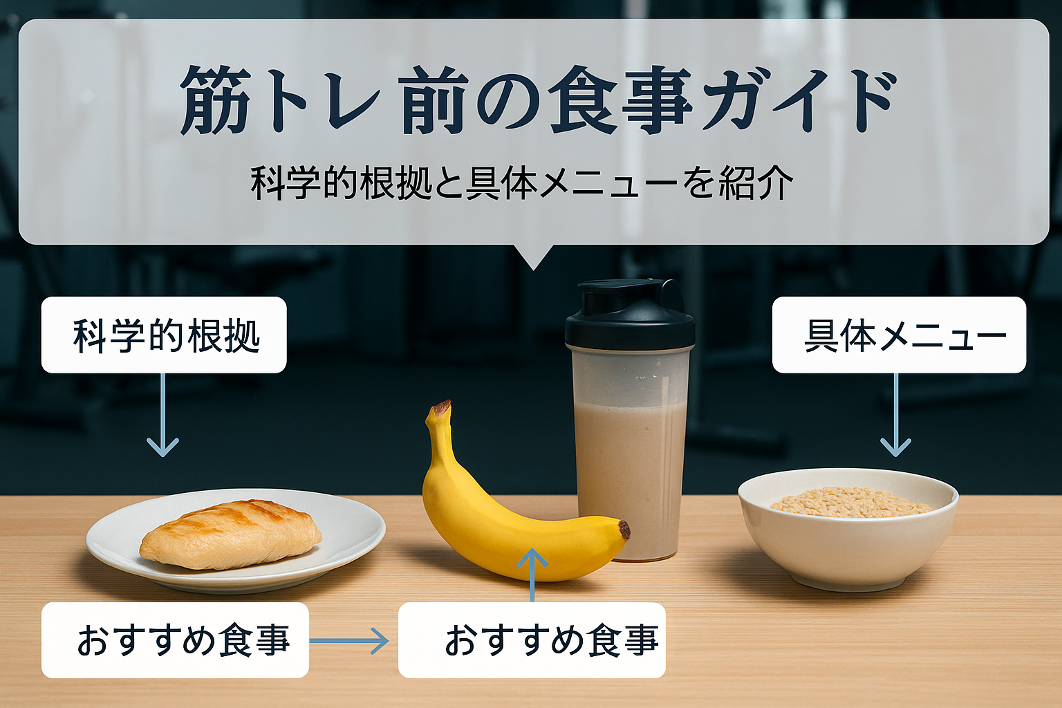 筋トレ前の時間帯ごとに適切な食事内容を選ぶことで、消化不良を避けつつエネルギー補給ができます。